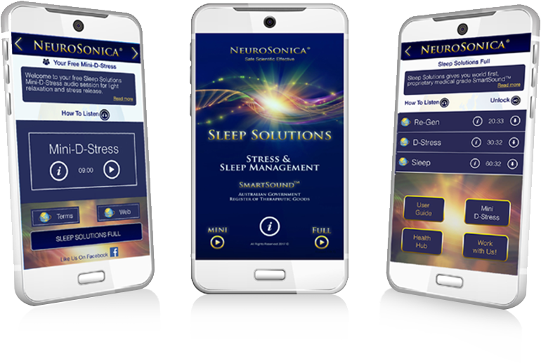 'Sleep Solutions with DeStress' is a highly scalable, effective, world first sound treatment to help manage stress, sleep and other issues that impact daily wellbeing, resilience and performance.